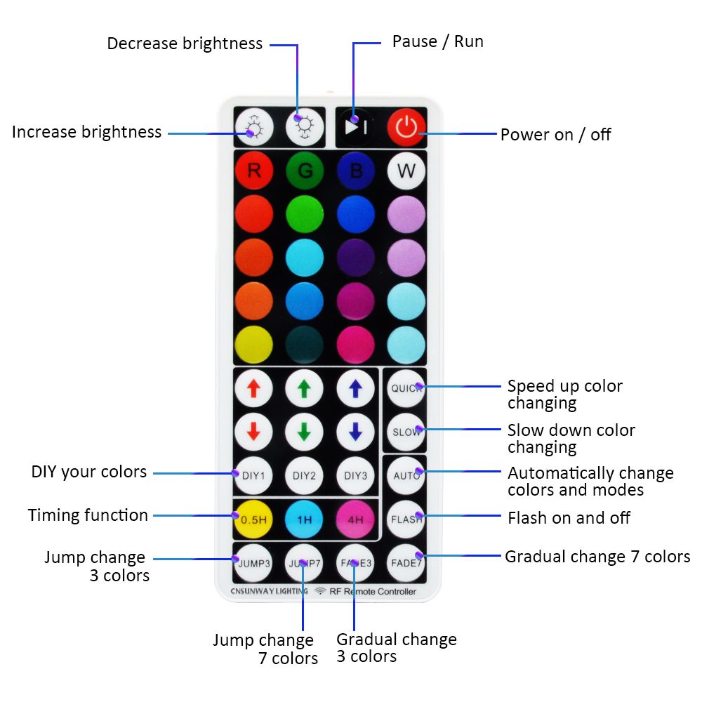 Get a color marker and color the whole LED. Press any DIY Color Setting button on the distance. Turn on your LED light strips.